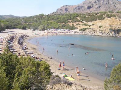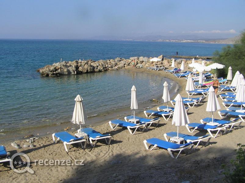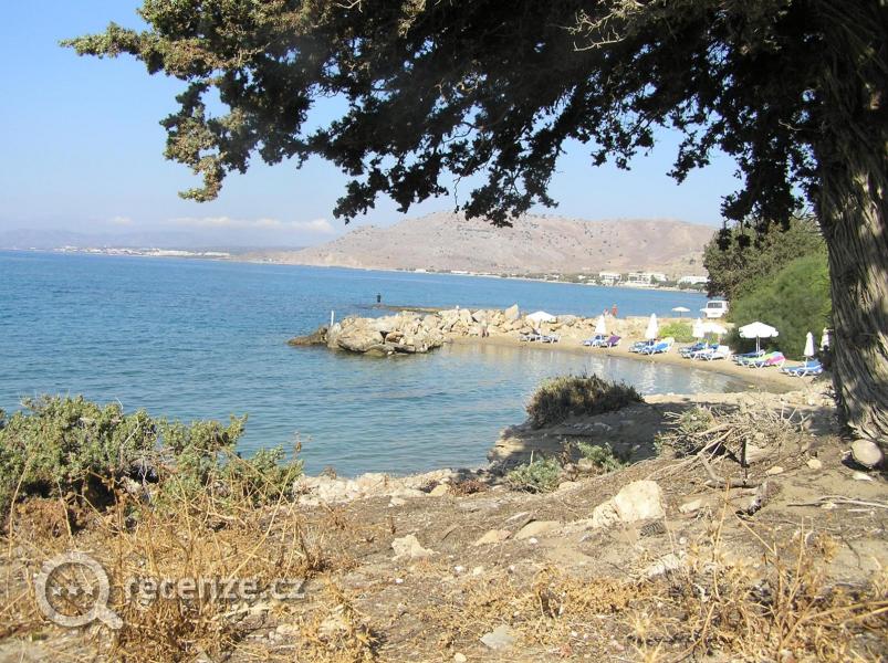 Poblíž studii tři menší pláže s dobrým vstupem do vody s nabídkou slunečníků.Okolí pláží však nebylo pěkně uklizené. Nepoužité a staré kostry lehátek a slunečníků nahazených poblíž pláží. Z nejbližší pláže jezdí malou loďkou kapitán Nikolas,který každý den vyhazuje plasty ze své loďky. To nás tam trápilo. Vždy jsme tam plavali a plasty dopravili na břeh a vyhodili.