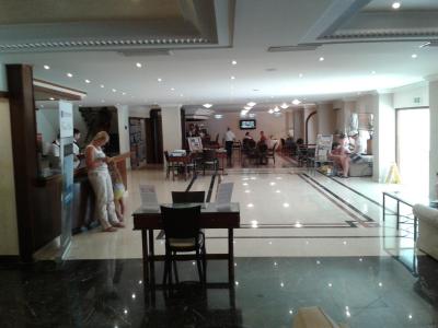 Snídaně jsou velmi monotónní s minimem změn. Zaregistroval jsem pouze náhradu slaniny za palačinky, jinak je každý den totéž. Tři dny podávali zkažená míchaná vajíčka, která opravdu smrděla. Když jsem personál upozornil na tuto skutečnost, pouze celý tác promíchali a nechali jej dál k dispozici. Večeře byly pestřejší, ale výběr je velmi malý ve srovnání s tím, co nabízí skutečné 4* hotely. Navíc jsou švédské stoly strašně malé a přístupné jen z jedné strany: Musíte si vyčíhnout optimální dobu, kdy je v hotelové restauraci málo hostů, jinak budete neustále stát v nějaké frontě nebo čekat u grilu, než kuchař udělá pár kousků masa. U pizzy stála běžně fronta 20-30 lidí až k recepci. Celý systém uvádění hostů ke stolům je naprosto stupidní a zdržuje. Nemůžete přijít do restaurace a sednout si kde chcete. Nuceně čekáte u dveří, až si vás někdo všimne a zeptá se, pro kolik lidí chcete stůl. To znamenalo další fronty a další čekání.