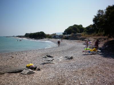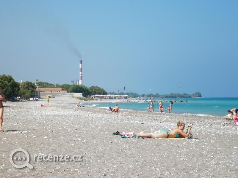 Přírodní pláž bez plavčíků nám vyhovovala, hlavně málo lidí ,jen škoda,že je ohraničená továrním komínem,který kouří černý dým, lehce v dálce.100m od hotelu
