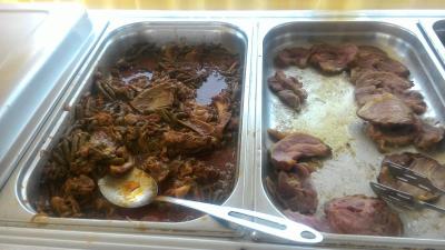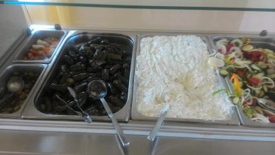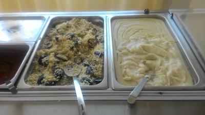 Na jídlo nestačí slova,ani tato kolonka.Nic horšího jsme nezažili.Pod pojmem All inclusive si představuji něco jiného. Snídaně- 1druh veky,nebo bulky, máslo, džem, párky,vejce uvařená na tvrdo, salám stylu gothaj a něco jako bábovka, ta jediná se dala sníst.Oběd i večeře to stejné- viz foto...je to cca vše, co měli - rýže,kaše z prášku,1těstoviny, rajčata,okurky,olivy,sterilovaná zelenina, mušle a bud tučné maso, nebo kosti se zbytky masa. Dezerty nebyly žádné, pouze zmrzlina z prášku, ovoce nic, zvadlé hroznové víno, 1xbroskev.Někteří si nosili své jídlo,ti,co měli děti, kupovali pizzu,nebo jezdili na výlety, kde se najedli.Balíčky se naštěstí nedělaly.Na stolech igelity, lepící se na nohy....