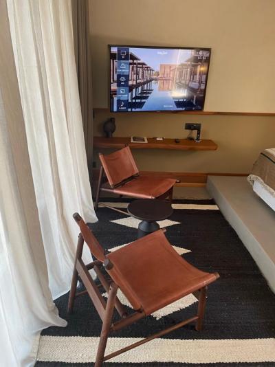 Luxusní prostorné pokoje, některé koupelny jsou s oknem přímo do ložnice. Možné jsou i pokoje s vlastním bazénkem nebo pokoj s obrovskou terasou.