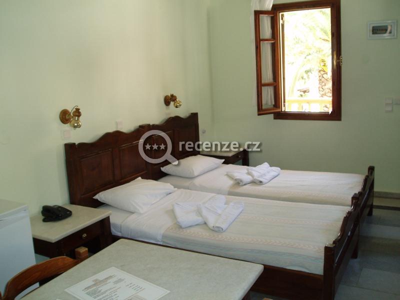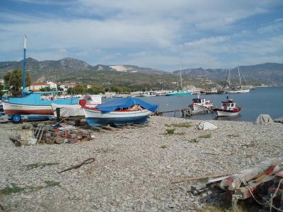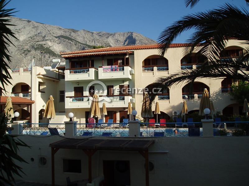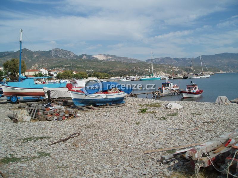 Vzdálenost od moře zanedbatelná. Pláž spíše oblázková, vstup do vody kamínkový a hned hloubka. To nám ale nevadilo, spíš by šlo o děti. Voda byla první 3 dny velmi studená-21 st., protože foukal velký vítr. Pak se to ale uklidnilo a voda se trochu ohřála.Na lehátka jsme nechodili, měli jsme své místečko ve vyhřátém písečku na pláži, kde jsme byli sami.Moře čisťoučké, krásný pohled z vody na horu Kerkys.