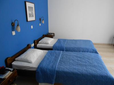 Pokoje dostatečně prostorné, klimatizované.Sociální zařízení společné s koupelnou.Mínusem je, jako vždy v Řecku, malý sprchový kout oddělený závěsem..Úložného prostoru dostatek i věšáky k dispozici.