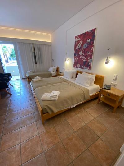 Pokoje jsou vybaveny starším nábytkem, koupelna je také stará, ale dostačující, v koupelně je vana. Na pokoji je klimatizace, TV, trezor (za poplatek) a lednička zdarma.