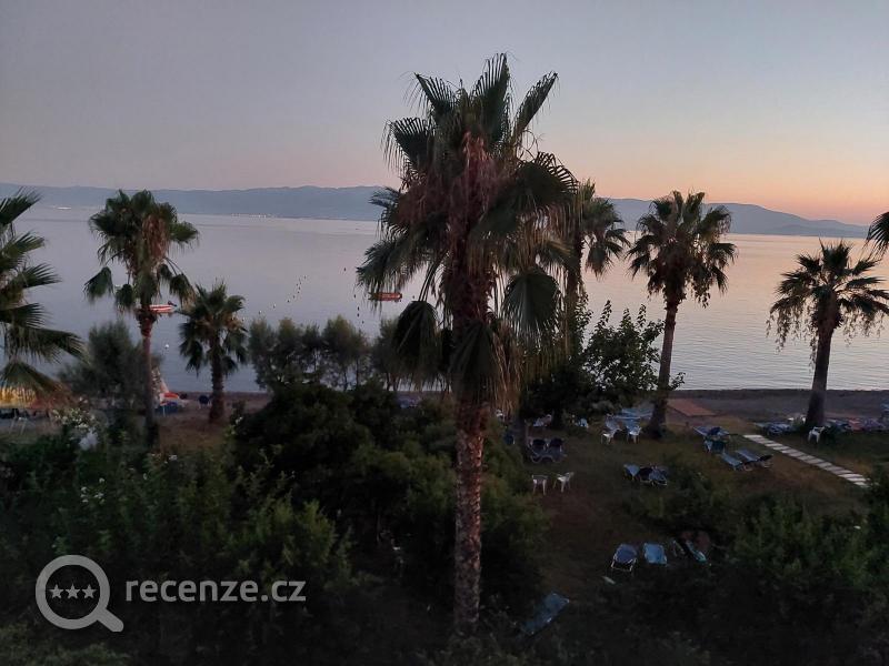 Oblázková pláž 30m od hotelu, pozvolný vstup do moře.