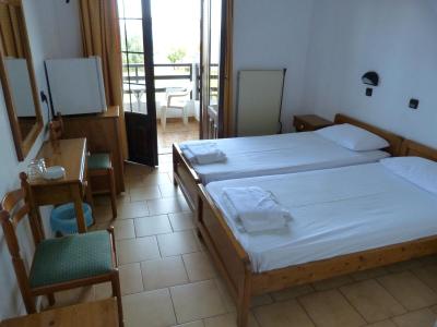 Jednoduché pokoje s lednicí, telefonem, sprchovým koutem, fénem, balkonem nebo terasou, výhled na moře nebo na krajinu. Pokoje jsou čisté, uklízí se každý den, jsou menší, ale dostačující, nic nám nechybělo.
