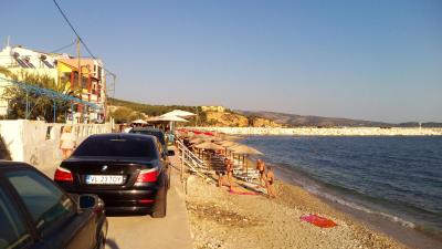 Nejbližší pláž (městská?) byla přes silnici přímo před parcelou Vila Anastazia.