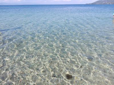 Pláž byla nádherná, písečná, upravovaná, čistá. V rámci pláže byly leátka a slunečníky. Když jste si něco objednali, měli jste je k dispozici. Takže my si dávali jedno frappé s vodou za 2.50 EUR a mohli jsme tam být jak dlouho jsme chtěli. Moře čisťounké, krásné, azurovo modré. Počátkem června ještě hodně svěží (18°C), ale já se vykoupala. Mušličky nejsou moc, chce to brzo ráno a na šnorchlování taky moc ne, já zkusila, občas nějaký ráček, občas ryba. Možnost vodních sportů je v nedalekém přístavu Skala Prinos, kde je možnost si půjčit lodičku nebo se domluvit na potápění. Pláž je ve vzdálenosti 50 m od hotelu, přes silnici. Je oddělená od silnice borovicemi, takže je tam opravdu krásně a voňavo.