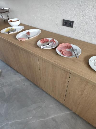 Hned prvy den neupratana kupena po predchadzajucich klientoch. Po dvoch vmojich vyzvach ju prisla umyt. To bolo naposledy. Upratovanie bolo vysypanie kosa a hodila nam toaletak. Jedlo cele zle. To iste, ziadny vyber a po hodine na ranajkach nebolo nic. Musela som si vsetko pytat. Stazovala som sa delegatke ale vraj nech idem jest do rachoni bay a nech si reklamujem co chcem, ale nepomoze mi to. My sme zabradlie na schodoch mali ale boli sme jediný. Za to na terase hniezdo lastoviciek a pol okadenej steny. V podkrovi priserne teplo bez klimy. Ziadny trezor na izbe iba upozornenie ze hotel nezodpoveda za stratene veci. A preto ked synovi zmizlo z kufra znackove tricko nemozem nic...A takto sa da znechutit grecko, nepomohli ani nadherne plaze...