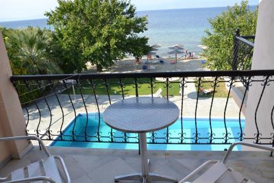 K dispozici je bazén včetně baru, do kterého se nesmí bezprostředně po jídle. Lehátka jsou zdarma u bazénu i na pláži. Na pláži je k dispozici sprcha. Wifi je dostupná v lobby u recepce. Lednice platí extra - 3 euro na den - je lepší ji objednat již dopředu. Rachoni beach - moderní pokoj, balkon, TV, hezká koupelna, nový nábytek. Rachoni Bay - obyčejnější, ale čité.