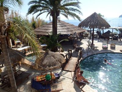 Hotel je umístěn ve svahu nad pláží - část jedním směrem od hotelu je písečná a část ve druhém směru je kamenitá.