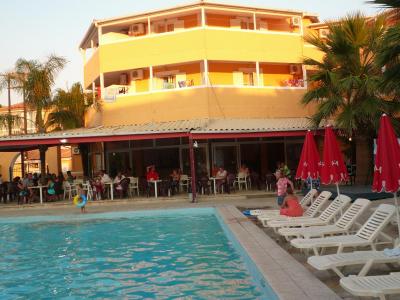 Pár metru od hotelu řecká cestovka s českou studentkou, velmi ochotnou - větší výběr výletů a lepší ceny, než u delegátky. Doporučuji lodní výlet kolem ostrova. V blízkém přístavu k vidění každé ráno (8-10 hod.) starý želvák, kterého rybáři krmí, za přístavem směrem na Laganas lze sbírat mušličky, na pláži u hotelu jsme téměř žádné neviděli. Více obchodů, barů a autobusová zastávka je v Laganas asi 1,5km po pobřeží, poslední část cesty vede vodou. Po silnici mnohem delší cesta.