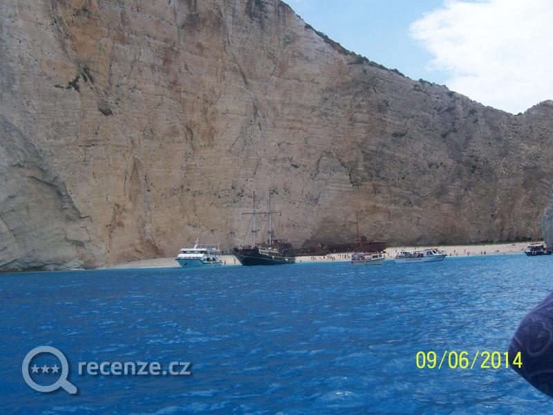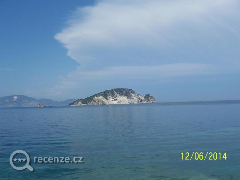 Barva moře jako vždy v Řecku, čirá, modrozelená. Úplně blankytně modrá, nezvyklá, je vidět při výletu lodí v lagunách u skal a jeskyní.
