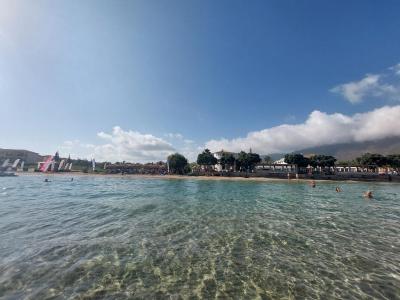 Pláž a moře je level milion. Kdo má rád moře typu rybník, tak bude spokojený. 30 metrů od pláže máte vody ani ne po kolena. U vstupu je pár oblázku, ale pak už jenom písek.