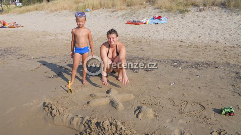 Pláž byla asi to nejlepší na celé dovolené. Je to celkem daleko od moře. Není pravda jak píší že to je cca 400 m, tak možná přímou čarou. Je to tak kilometr po silnici. Je tam zkratka přes olivový háj, ale je to soukromý pozemek. Pokud Vás nikdo nechytne tak je to o dost rychlejší než po silnici. Chodili tamtudy všichni.