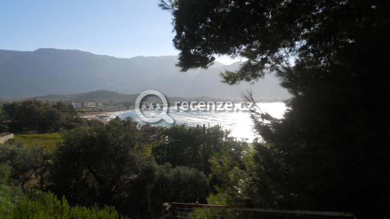 Pláž byla čistá (bez odpadků). Nebyla ani v hlavní sezonu přelidněná, vždy dosti místa pro další přicházející k odpočinku a koupání :D. Nádherný výhled na krajinu, také na protější ostrov Kefalonie.