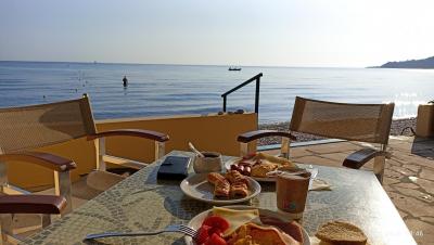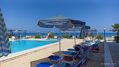 Hotel se nachází přímo u moře, takže jsme leželi na léhátkách pod slunečníkem u bazénu a chodili se koupat do moře. Nebylo tak nutno platit plážový servis. Léhátek je dostatek a každý si najde místo podle svého gusta. Výhodou je i to, že si zaberete léhátka a ty můžete mít po celou dobu pobytu, jelikož si své osušky necháváte přes noc na léhátkách. Rekreanti v průběhu týdne odjíždějí a tím se uvolňují léhátka pro případnou změnu místa.