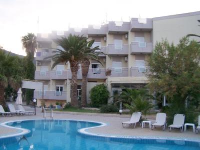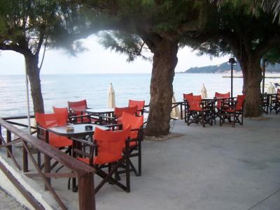 Hotel s výbornou polohou přímo u moře, pozvolný vstup, moře krásně čisté. Pláž je úzká, oblázkovo -kamenitá, v moři zlatavý písek (jen cca první metr od břehu je ještě pás kamínků a oblázků), hodí se proto i pro rodiny s dětmi. Směrem doprava již písečná pláž (pouze pár metrů). Na pláži lehátka za poplatek (cca 5-6 EUR), též na terase před hotelem lehátka za poplatek 5 EUR. U bazénu zdarma. Dvě pláže - Alikes (oblázková a kamenitá - užší přecházející v širší písečnou) a poté vzdálenější Alikanas (ta je obsazenější - písečná).