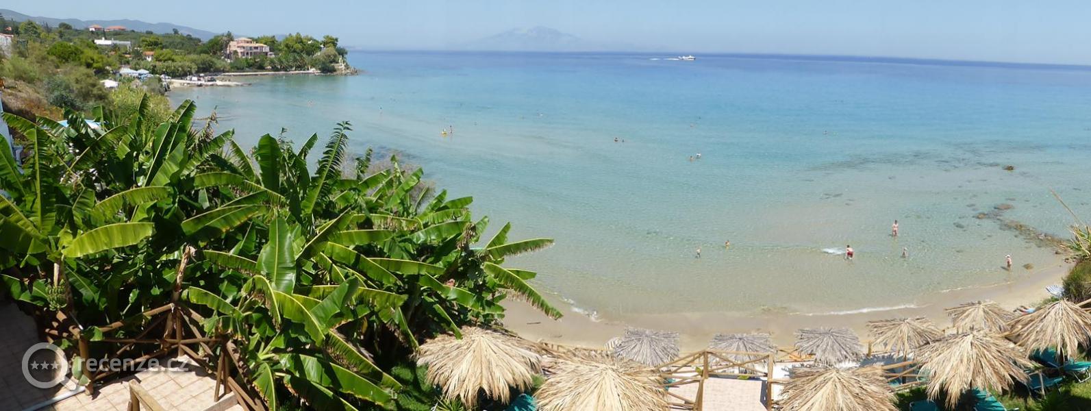 Banana beach ve Vasilikosu - široká dlouhá písečná pláž, přelidněná, klid tam nenajdete, vhodné pro mladé lidi nebo rodiny s dětmi, které mají rády rozruch.