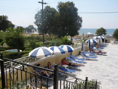 Ubytování není žádný luxus, na druhou stranu se jedná o pěkný a útulný hotýlek přímo na pláži s pěkným výhledem na moře. Hotel je zřejmě po rekonstrukci, vybavení a nábytek trochu starší, ale není to žádná závada pro pobyt. Velmi příjemná je terasa, na které se snídá a relaxuje pohledem na moře.