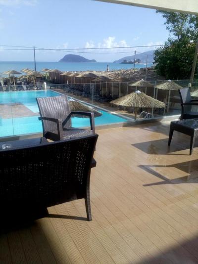 Hotel je moderní, pěkný výhled na moře je s terasy u recepce. U bazénu je dostatek lehátek se slunečníky.