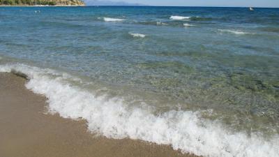 Cesta na pláž buď přes hotely nebo olivovým hájem, kousek po silnici a už vidíte moře. Můžete se vydat napravo nebo nalevo. My jsme to střídali. Voda je průzračná, čistá. Napravo od našho přístupu k moři byly kameny - to bylo na boty... nalevo byly drobné kamínky, pak písek a zcela nalevo - dalších asi 150m byl jen jemný písek již od deky... Takže pro každého vstup jak si zamane. Jak drobné vlnky, tak na písčité pláži zcela rovná voda vhodná na plavání a šnorchlování (ale moc se v moři hledat nedá, vidět jsou jen občas malé rybky)