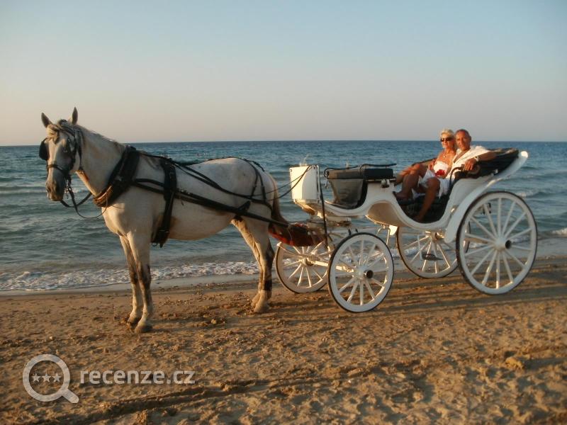 pláž 100 metrů příjemnou procházkou, pláž úzká, odpoledne větší vítr a větší vlny...kousek dál vpravo u hotelu Alexandra klidná zátoka, ideální na plavání, jemný píseček, bez vln...leželi jsme u bazénu a co chvilku se prošli k moři, aspoň jsme měli trochu pohyb :)