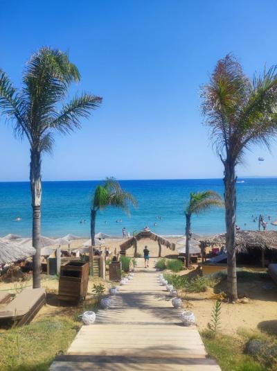 Pláž krásná, velká, dostatek nových lehátek. Vyhraněná část pouze pro dospělé. Šlapadla a padlboardy k dispozici zdarma. Pláž přístupná po schodech, není vhodné pro osoby se zhoršenou pohyblivostí. Doporučuji boty do vody, při vstupy do moře jsou oblázky