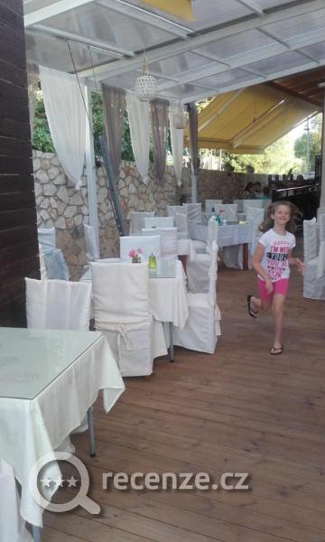 Ještě musím zmínit, že jídlo se vydává v prostoru pod recepcí, což nás zarazilo, že se jí někde ve sklepě a bylo tam asi jen 6 stolů. Druhý den jsme zjistili, že se dá jít po schodech ven, kde je pěkné venkovní posezení a tak jsme potom chodili jen tam. Nevýhodou je, že když si chcete jít přidat, běháte nahoru a dolů, ale není to žádný problém. Nahoře je místa dost a občas tak můžete zahlédnout třeba i zvědavou ještěrku.