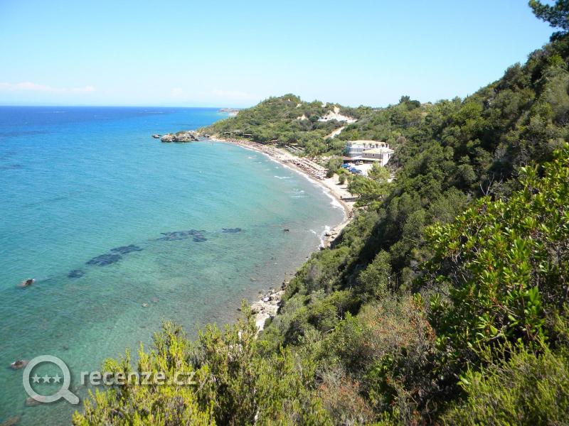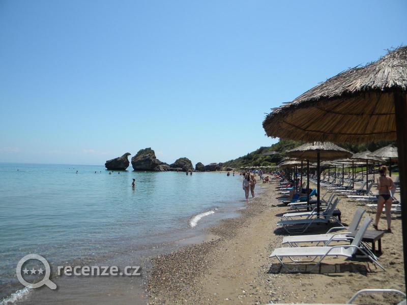 pod hotelem asi 50 metru mala prirodni plaz jinak supr plaz s veskerym servisem asi 1 km od hotelu pesky jedne s nejhescich plazich na ostove jsem na zakyntosu us po nekolikate a dost jsme toho projeli moc doporucuju more ciste pisecek deti jdou do more 50 metru a stale malo vody krasne velkke kameny ve vode plno ryb pro snorchlare lehatka podrazila stoji 7 euro pro dva honoceni 5 s hvezdickou