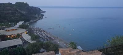 K moři vede krásných 136 schodů( které nejsou večer osvětlené)nebo okolo hlavní brány z kopce do kopce s tím počítejte. Moře krásně čisté, teplé, pozvolný vstup... s dětmi ideální. Pláž z 3/4 zábrana lehátky patřící baru Noe v ceně 25-60euro