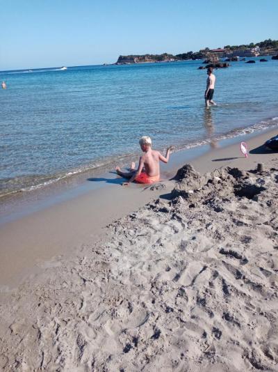 Pláž písečná, moře teplé, průzračné a opravdu slané.