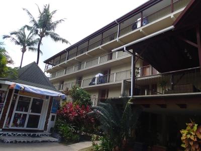 Jednodušší hotel umístěný uprostřed pláže Beau Vallon