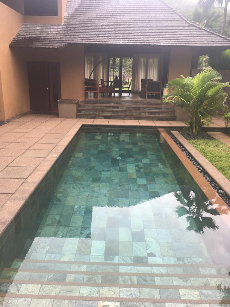 K dispozici jsme měli prostorné vily až pro 6 dospělých osob. Pro mě to bylo jak ubytování v jiném světě. Obrovská vila, která vypadá jak rodinný domek, s privátním bazénem, 2 obrovské terasy. A ty pokoje? Wow! Ložnice s výhledem na zahradu, koupelna s obrovskou šatnou. Na posteli dárek pro hosty, postel plná polštářů a dokonce dostanete návod k polštářům, jaký zrovna zvolit!