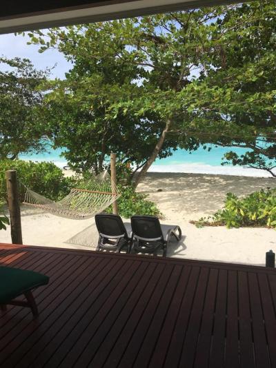 Hotel se nachází přímo u písčité pláže, z pokoje můžete jít rovnou na pláž (je to cca 50 metrů). Za hotelovým komplexem se nachází veřejné pláže, kde ale není ani noha, jelikož ostrov je víceméně obydlen jen hotelovými hosty a personálem.