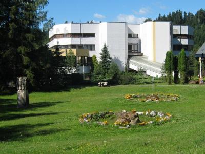 Okolí hotelu je nádherné, zvláště když svítilo Slunce. Upravený lázeňský park a krása podhůří Vysokých Tater uchvátí snad každého milovníka přírody.