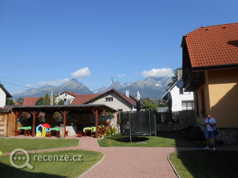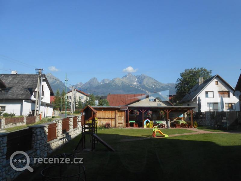Okolí penzionu bylo celkem pěkné, obchod asi dvě minuty otevřen až do 19:00. Z penzionu byl krásný výhled na celé pohoří Tater. My jsme měli sice pokoj na druhou stranu, ale nevadilo to, protože jsme stejně netrávili moc času na pokoji.Pokud nechcete jezdit autem tak autobusová doprava ze Staré Lesné do centra Tatranské Lomnice je velmi dobrá i so+ne+svátky.