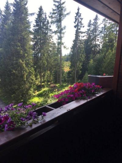 Z jedné strany výhled na sklady, jinak je hotel ale v klidné oblasti bez davů turistů pod okny. Rovněž ale není daleko od centra Štrbského Plesa.