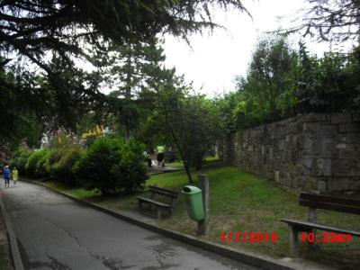 K pláži cca 200 m, oblázková, z kraje placená lehátka a slunečníky, ale možno ležet kdekoliv na vlastní dece zdarma. Plážová promenáda vede až do Izoly a všude cestou polehávají rekreanti kde se jim líbí. Moře mělké cca 60 m od břehu, zkraje menší kameny ( 10 m) potom písek.2 věže s plavčíky ( do 18 h), půjčovna šlapadel, různých člunů apd. Velký tobogán (1 e- 1 jízda, 5 e -půl hodiny, 10 e-hodina, 20 e celý den) Pozor 2 obtížnosti : červený rychlejší!!!