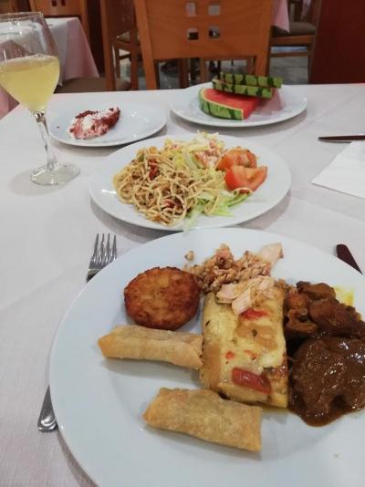 Každý den jiný jídelníček k obědu i večeři. Bylo vybírat z velké nabídky španělských národních jídel, 3 - 4 úpravy ryb denně. Žádné hlavní jídlo se za celý týden neopakovalo.