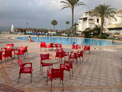 S personálem ve školní jídelně - pardon hotelové restauraci - bylo těžké se domluvit anglicky, mluvilo se tu výhradně španělsky, většina hostů byla španělské národnosti. Nijak milý a úslužný teda nebyli a spíš si tak člověk přišel na obtíž, ikdyž nic nechtěl. Stály se dlouhé fronty na jídlo, asi kvůli covidu… Jednou jsme za celý týden sehnali místo na lehátku u bazénu, klasická osušková rezervace, ikdyž to bylo výslovně zakázané, to se nekontrolovalo.