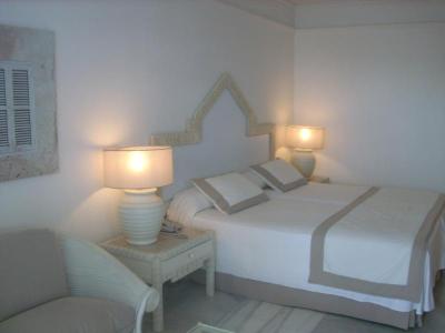 Pokoje mají výhled na moře, do zahrady, nebo na bazén podle toho, v jakém patře se nacházejí.