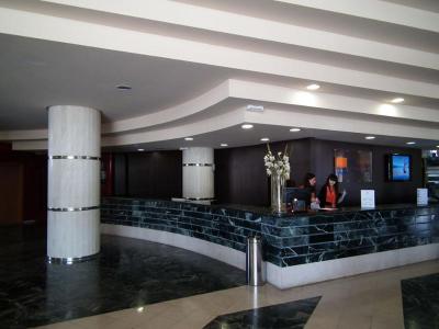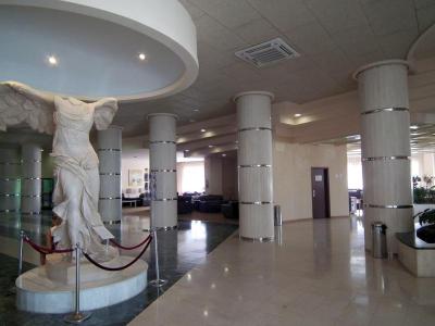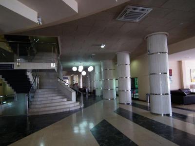 velká vstupní hala s recepcí, posezení, resturace, výtahy. V lobby hotelu nabízeli zdarma využít Wi-Fi připojení nebo internetový koutek. Za poplatek je k dispoci Wi-Fi připojení na pokojích. Dva bary, konferenční prostory, obchůdky, diskotéka/animační sál, dva venkovní bazény s lehátky a slunečníky zdarma a bazén pro děti. Hotel nemá nějakou větší zahradu plnou zeleně. V okolí bazénů jen pár vysokých palem, jika betonové ohrazení, za kterým je hned parkoviště a ulice, přes kterou je hned pláž. Vnitřní areál hotelu se mi nelíbil, působil vcelku nútulně a dost rušně. Žádný tichý kout mezi keři, stromy, v zeleni.