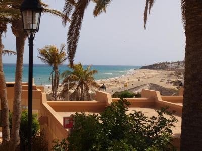 Okolí hotelu velmi klidné, pár obchůdků, pár restaurací, když se vydáte vlevo od hotelu přes silnici, je zde nádherný něco jako park, který je plný palem, kaktusů, u nás by to byla super botanická zahrada, je zde klid a stín. A když přejdete ještě další silnici, dostanete se dalším parkem podél cesty k velkému supermarketu (asi 5 minut chůze), kde mají i takové ty upomínkové předměty (my dárečky vesměs koupili na letišti v bezcelní zóně, tam jich je moře). Za supermarketem je benzinka, dobré vědět při půjčení auta. Půjčili jsem si auto na jeden den, super zážitek, to musíte vidět. Na sever od hotelu pár km úžasná vyhlídka na ostrov, pak městečko Ajuy s černým pískem na pláži a s promenádou kolem skalnatého pobřeží (nutná pevná obuv), na konci jsou velké jeskyně, úchvatná podívaná. Také město Morro Jable je úžasné, je zde pláž jako v Karibiku, sice moc lidí, ale stojí to za to se aspoň podívat. Pak pláž Jandia Risco el Paso, která je sice určena především pro výuku windsurfingu, ale lze se zde i koupat, tak obří pláž jsem neviděla, překrásný písek a oceán, krásné vlny.