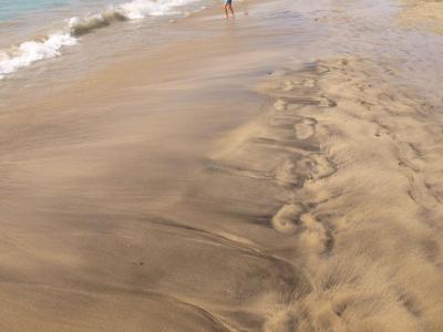 Nejkrásnější co jsme kdy viděli!!!!! Moře čisté, průzračné, bez chaluh, bez medůz, sice chladné, ale i když nemám ráda studené moře, byla jsem tam skoro pořád, a najednou studená voda nevadila. Pláž čistá, uklízená, koše, našli se i neukáznění turisté, ale opravdu velmi, velmi málo. Krásný žlutý písek, ustupující vlny tvořili na pláži mramorový efekt jak se mísil bílý a černý písek. Příliv a odliv 2x denně, takže se neustále měnila šířka pláže (tuším o 7 metrů), což bylo příjemné, protože vlevo od hotelu se vždy po odlivu objevily velké lávové kameny plné mořského života. Vlevo od hotelu na skalách i pod na kamenech pouštní veverky, chodily i mezi lidi, syn je krmil z ruky, super zážitek. Dlouhé večerní procházky po pláži -NUTNOST!!!! :-)