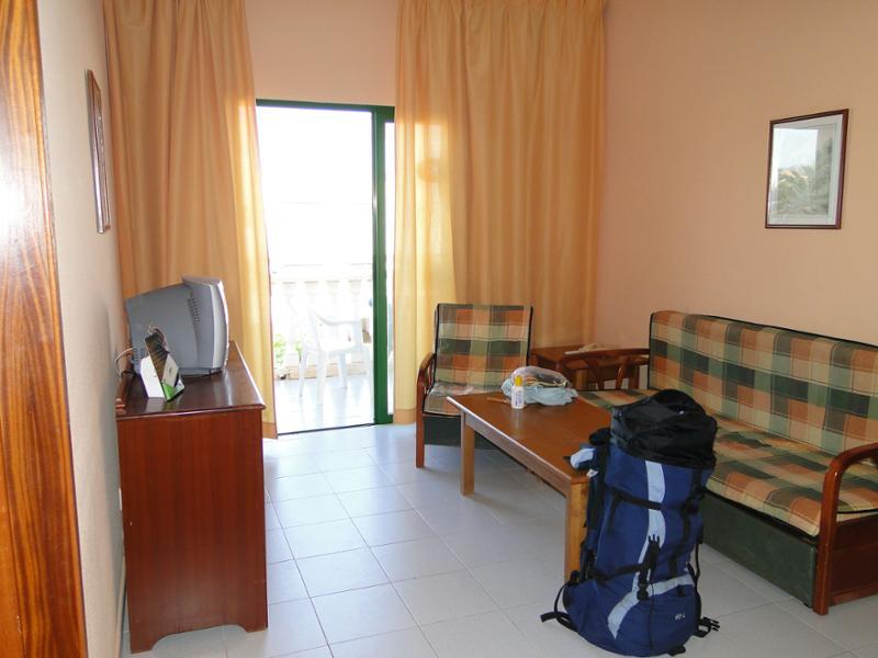 Vybavení apartmánu je plně dostačující. V kuchyňce je základní nádobí - 2 hrnce, pánvička, talíře, skleničky, hrnky, příbory, lednička, dvouvařič (sklokeramická deska), mikrovlnka. Na pokoji je malá televize. V ložnici je trezor - lze jej využít za poplatek v recepci. Apartmán je velmi prostorný, hezky zařízený, má velkou terasu.