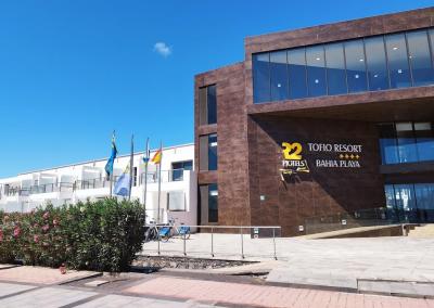 Hotel Bahia Playa Design je blíže pláži a je zde před ním dlouhá promenáda a pláž s tmavým pískem.