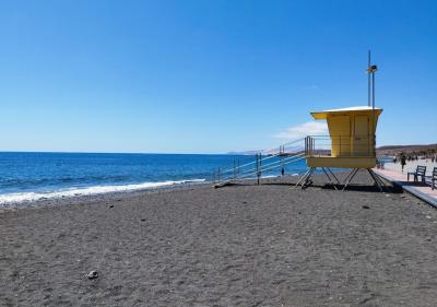 Pláž s tmavým pískem Playa de Tarajalejo hned před hotelem, nečekejte určitě světlý písek. :) Pláž je užší a menší, ale na "opláchnutí" to stačí.
