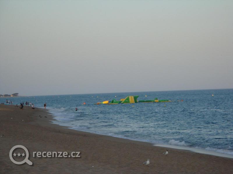 pláž asi 50 m,hrubší písek,možnost půjčit si šlapadlo,nechat se táhnout za člunem na "babánu",svézt se lodí po pobřeží do dalších letovisek,lehátka a slunečníky za poplatek