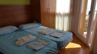 Velke apartmany (pro 6-8 lidi), trochu starsi ale vsechno fungovalo, svetle, s krasnym vyhledem na more a bazen. 3 mensi loznice, obyvak, kuchyn, 2 koupelny, balkon. Pohodlne a klidne ubytovani, dobre pro rodinou.